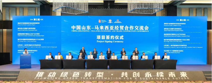 The China (Shandong) - Malaysia Economic and Trade Cooperation Conference was organized by the Shandong Provincial People's Government, the Ministry of Investment, Trade and Industry of Malaysia, and the Malaysia-China Business Council. It was undertaken by the Department of Commerce of Shandong Province, and co-organized by the National Chamber of Commerce and Industry of Malaysia, the Associated Chinese Chambers of Commerce and Industry of Malaysia, and the Malaysia China Enterprises Association. The Conference attracted over 400 participants from relevant government departments, business associations, and key enterprises of both countries. Adhering to the principle of "pragmatic engagement," the meeting successfully worked towards further expanding cooperation scale in emerging areas such as agricultural product deep processing and green energy.