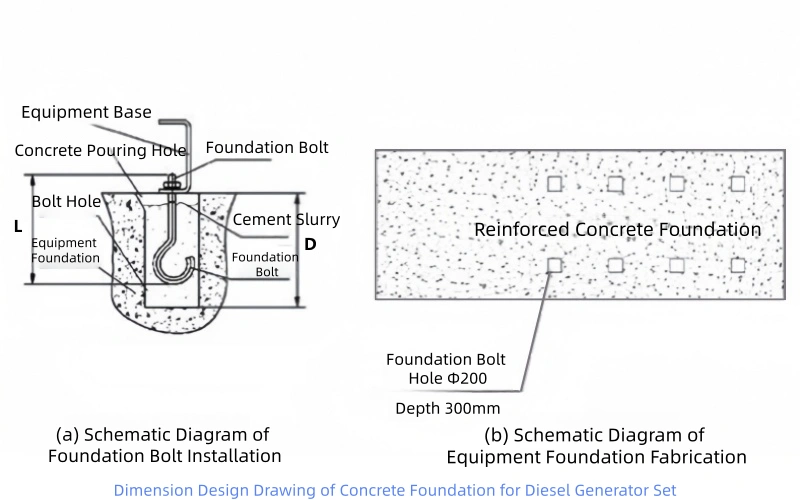 The concrete foundation should usually be 100-200mm higher than the ordinary floor to form a base. When pouring the concrete foundation platform, ensure that the concrete foundation is horizontal and that the foundation platform has sufficient capacity to bear the generator set.